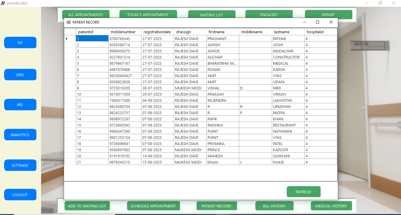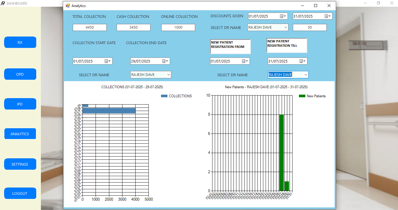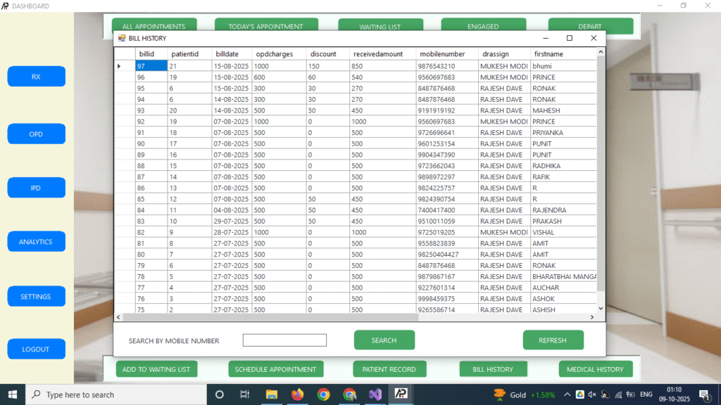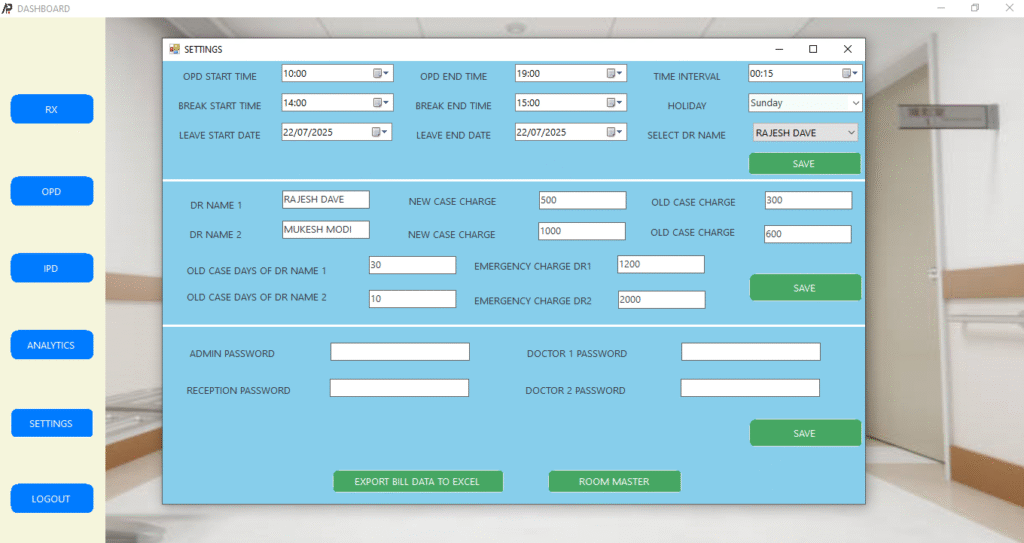 Recently Delivered an offline hospital management software which incorporates most of the required features like from appointment – patient que management to patient billing – from prescription to any medical certificate – from analytics to settings, giving role based access to every one. A Very few glips of the software Images given below